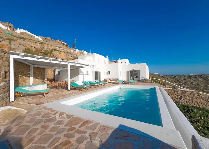 3 km vom Strand von Agios Stefanos gelegen, bietet die 5-Zimmer- Villa Prive 77 Mykonos Fanari Zugang zu einer Terrasse sowie einen Ausblick auf den Garten.